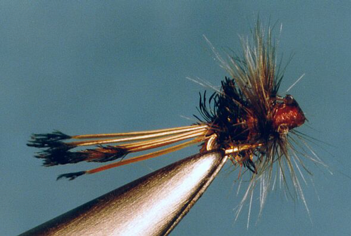 I took 3 feet of 6/0 unwaxed thread and split in in half to give more latitude in tying. Used the herl from sword feathers for peacock herl. Hackled with ostrich herl.