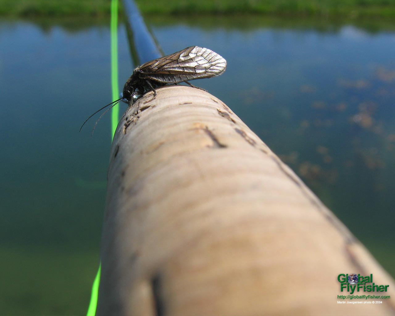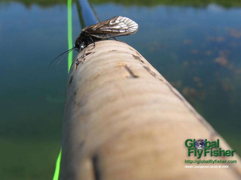 Caddis on the rod handle. Photo: Martin Joergensen © 2004
