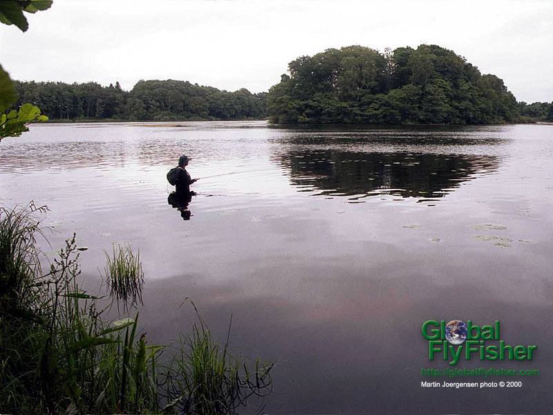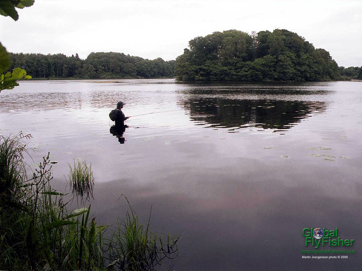 Wade fishing for pike in a small lake. Martin Joergensen photo. © 2000