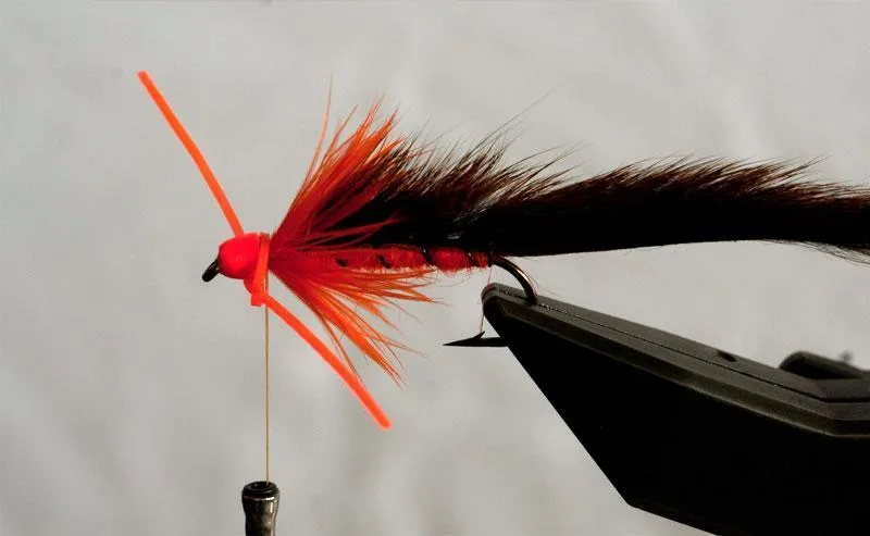 Tie in the rubber legs by simply knotting them around the hook – on set on top one on the bottom.